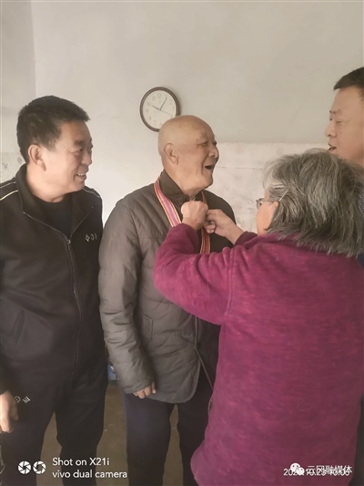 由于老战士们年纪较大且居住分散,本次发放活动采取上门现场发放的方式进行。工作人员每到一户,都与老英雄们亲切交谈,拉拉家常,听他们讲述当年在艰苦的环境下英勇战斗的事迹,还详细了解了他们的生活和身体状况,嘱咐他们要保重身体,有困难及时向政府反映。戴上纪念章的老战士们满满的自豪感、荣誉感。