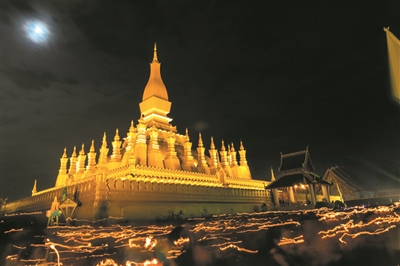 这是10月31日在老挝首都万象拍摄的塔銮节祈福活动现场。