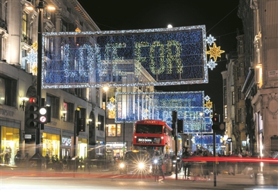 伦敦点亮节日彩灯向抗疫英雄致敬