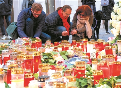 11月5日,人们在奥地利维也纳摆放鲜花和蜡烛悼念遇难者。