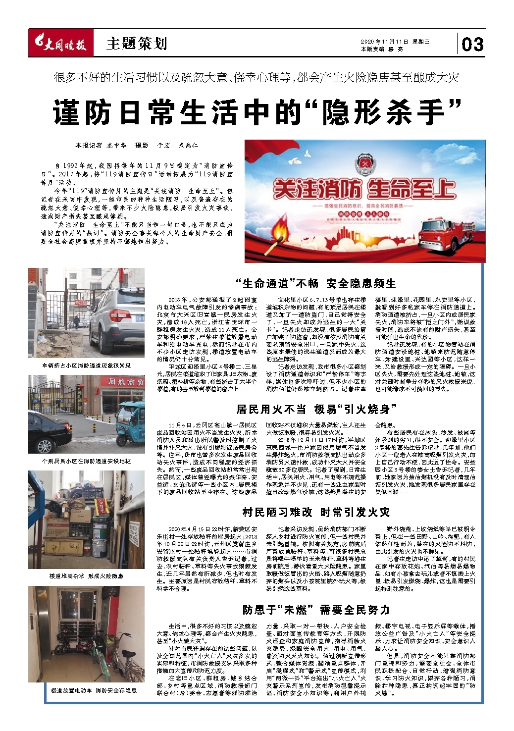 很多不好的生活习惯以及疏忽大意、侥幸心理等,都会产生火险隐患甚至酿成大灾~~~本报记者 龙中华 摄影 于宏 戎禹仁