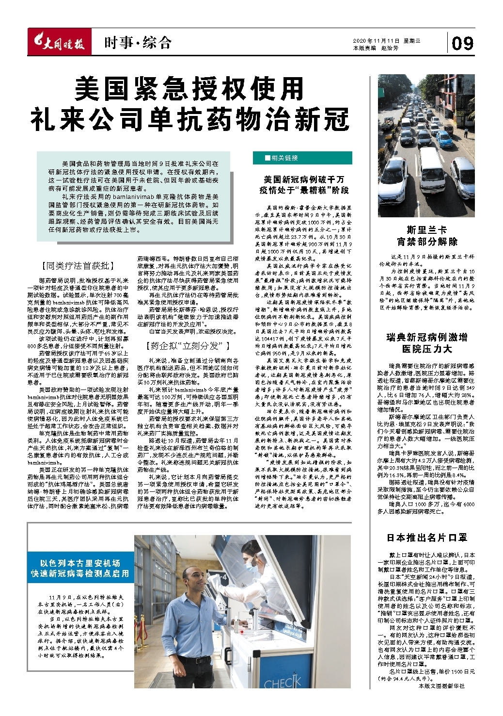美国紧急授权使用 礼来公司单抗药物治新冠