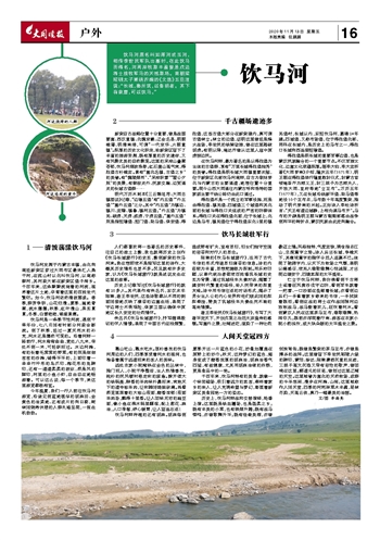 伫立于饮马河畔,我仿佛看到千古将士迎着狂风黄沙戍守边防,看到军卒就着一把雪、一口炒面在垒砌着长城;亦看到边兵们一手拿着家乡寄来的书信,一手拭抹着眼泪;看到征战的将士在作战间隙河边放牧战马,战马撒着欢儿,狂饮着河水。看到蒙汉人民在这里茶马互市,载歌载舞,热闹非凡;眼前亦浮现着行商、游客在农家小院小酌浅饮,或大块朵颐的太平盛世之景。