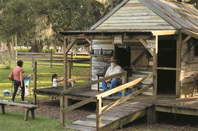 当地时间11月14日,在美国路易斯安那州新奥尔良,人们从德斯特雷汉种植园小木屋旁走过。