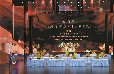 此次大展期间,还举办了一系列以魏碑书法为主题的精彩活动,包括导师培训、书法家进校园、高端学术论坛、名家创作笔会、优秀作品大展等,受邀参加大展的书法名家们,还走进校园,和口泉六小、大同三中的师生们交流互动,强化魏碑书法在中小学的认知度,也通过这种形式,把大同深厚的文化基因传承下去。参赛者的优秀作品不仅会登上电视荧幕,出现在《“云冈杯”首届全国魏碑书法双年展》电视展播专题节目中,还将在“云冈杯”首届全国魏碑书法双年展现场展出。此后,书画频道还将编辑出版《“云冈杯”首届全国魏碑书法双年展》入展作者作品集,将参赛者优秀作品收录其中。另外,获奖者还有机会成为书画频道的签约书法家。总决赛暨颁奖典礼将于今日在大同大剧院举行,在典礼上,将宣布特等奖和一等奖获得者名单。主办方透露,颁奖典礼将以魏碑书法元素为核心,同时融入诸多传统文化元素,将书法、诗歌、音乐、舞蹈等艺术表现形式融为一体继而多维度呈现,并通过电视荧屏和互联网向全球观众进行传播。