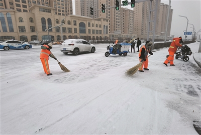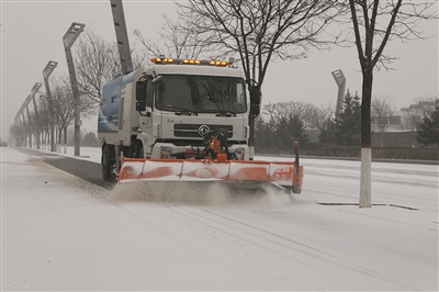 本报讯 (记者 杨昱郁) 出动4000余名环卫工、各种作业车辆150余部,抛撒融雪剂……昨日,平城区环卫处、市新城环境公司采取“人机结合、边下边清”的作业方式,对重要区域、主要路段进行循环清扫。