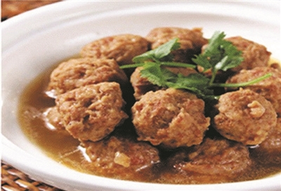 黄焖丸子,是大同人十分喜爱的一道美食,也是老大同“八大件”之一。说起丸子的来历,民间流传着多个版本,时间最早的说其起源于秦朝。根据稗史记载,秦始皇好吃鱼,每餐必要有鱼,但又不能有刺,如有鱼刺则赐厨师死。一天,一位厨师在制作御膳时,见到鱼又胆怯又发恨,就用刀背砸鱼发泄。没想到,砸着砸着,他发现鱼刺鱼骨竟自动露了出来,鱼肉成了鱼茸。于是,厨师急中生智,挑出鱼刺,将鱼茸捏成圆形,投入烧沸的豹胎汤中。不一会儿,一个个色泽洁白、柔软鲜嫩的鱼丸浮于汤面上。这道菜呈上去后,秦始皇一尝赞不绝口,问其何名?厨师答:“首奉陛下,暂无名。”秦始皇见其数为九,状如点,就随手写下“九”字。又觉得少了点什么,便又加了一点,成了“丸”字。因其盛在碗里,遂称该字与“碗”同音。后来,这种做法从宫廷传到民间,食材也不仅限于鱼肉,渐渐演变为现在的猪肉丸、牛肉丸、羊肉丸、素丸子等等。