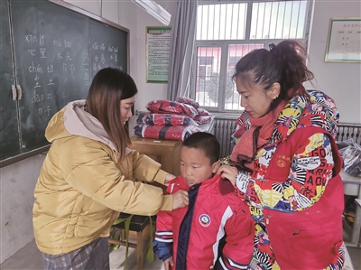 本报讯 (记者 龙中华) 25日,市爱心公益协会志愿者为天镇县3所学校的88名贫困学生送去崭新的棉校服和早餐饼干,让孩子们感到格外温暖。