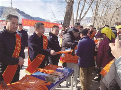 本报讯 (记者 孙露) 为切实推进扶贫村法治建设,营造浓厚的法治氛围及积极向上、平安和谐的社会氛围,24日,市司法局在定点帮扶村灵丘县赵北乡跃子沟村举行法治文化广场落成仪式暨法治宣传咨询活动。