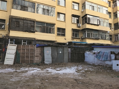 29日,记者在拥军东路小区走访发现,该小区有8栋楼,违建物就多达十几处,有的用木棍搭建,有的用彩钢板搭建。其中,有些违建物紧挨居民楼,废纸、废纸箱、旧衣物堆积如山,一旦失火,后果不堪设想。