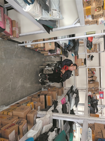 “喂!是小曾吗?查查我的包裹到了没?”“曾军伟,我想发个快递,你派人过来取一下”……记者看到,在这个占地面积近300平方米,集超市、快递周转等为一体的服务站,货架上摆的都是快件,客户络绎不绝,五六名员工正忙着查找寄取快递的包裹、扫描二维码出货、办理寄送快件的相关手续……