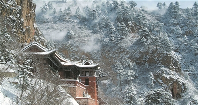 初冬时节,位于大同市浑源县城南约5公里处的北岳恒山被一场冬雪扮靓,山巅云雾升腾,山间银装素裹。