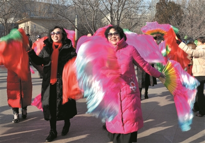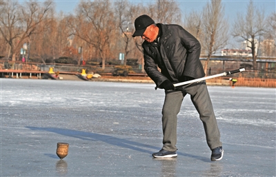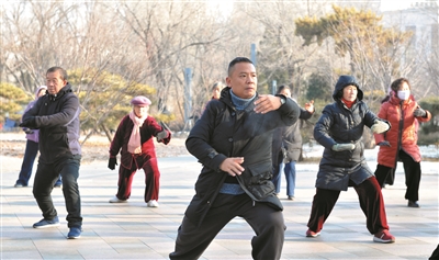 日前,记者在儿童公园看到,早晨气温虽然很低,但是公园里却是一派火热的晨练景象,人们有扭秧歌的、有打太极拳的,还有滑冰、打陀螺的,他们用全民健身的方式,开启崭新的一天。