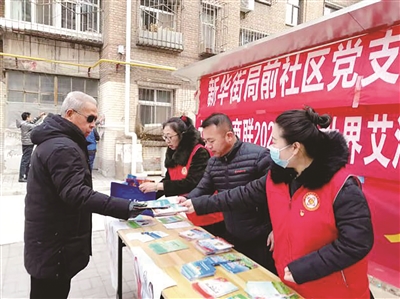 本报讯 (记者 孙露) 为普及预防艾滋病的相关知识,增强防艾意识,平城区新华街街道局前社区党支部联合市工商联在辖区开展了世界艾滋病日主题宣传活动。