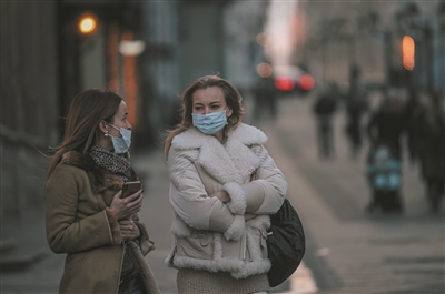 12月2日,在俄罗斯首都莫斯科,行人佩戴口罩外出。