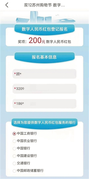 不过,相较上次深圳的数字人民币红包测试,此次苏州的活动又进一步拓展,数字人民币钱包的开立银行在工、农、中、建四大行基础上,又增加了交通银行和邮储银行。据介绍,这6家银行牵头的项目组已具备参与此次活动的条件,其他参研机构正在积极进行研发。