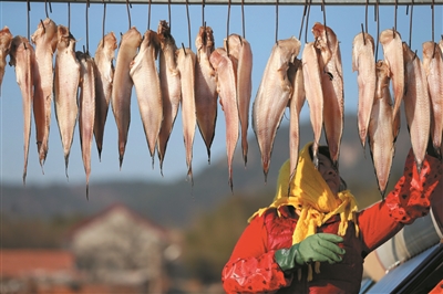 入冬以来,山东省青岛市即墨区沿海一带的渔民抓住晴好天气,忙着将捕获的鲅鱼、偏口鱼、鳗鱼等20余种海鱼进行切割、腌制、晾晒,加工成鱼干。