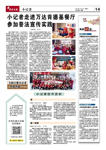 小记者走进万达肯德基餐厅参加普法宣传实践