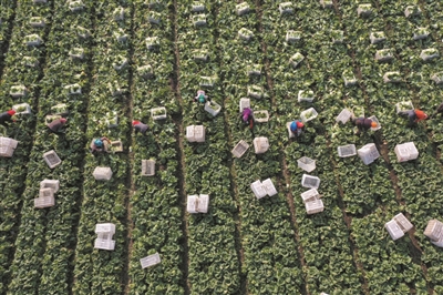 ▲ 12月5日,志愿者在山东省枣庄市市中区兴亮蔬菜农民专业合作社用三句半的表演形式向菜农宣传党的十九届五中全会精神。