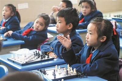 ▶12月8日,重庆市九龙坡区杨石路小学校2年级7班的学生们在上国际象棋兴趣课。
