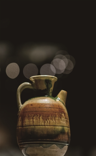 执壶在朝代更迭中也发生着变化,从型器上基本是由胖到瘦。唐代审美崇尚丰腴,反映在陶瓷造型上则是浑圆饱满。大同收藏的这件执壶就是代表。