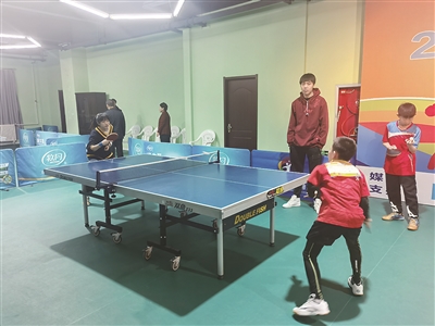 ◀ 昨日,“魅力国球”2020——2021“必修课杯”大同市乒乓球联赛(青少年组)在大同市高级技师学院体育馆举行。来自大同市、忻州市、朔州市的青少年乒乓球培训机构的15支代表队150多名运动员分别参加7个组别单打比赛。比赛分二个阶段进行,第一阶段分组循环,小组前2名出线参加第二阶段淘汰赛。 本报记者 戎禹仁 摄