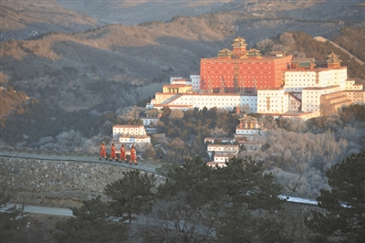 12月13日,在承德避暑山庄景区,避暑山庄消防救援站消防员在进行防火巡查。