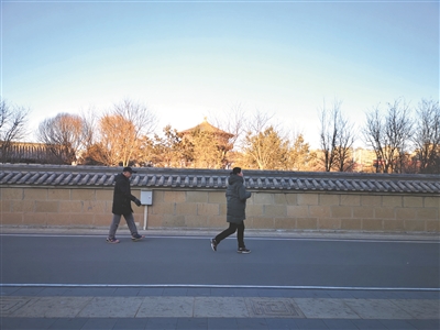 日前,记者在大同公园看到,环公园的路上都铺设了“大同蓝”透水沥青路面。家住附近的李师傅说,9月份的时候,公园里就开始动工修建步道了,当时看展板上的示意图就觉得不错。“现在步道建成了,这蓝盈盈的步道给冬日里的公园增色不少,在这里健步的人明显比以前多了。”14日下午3时多,在明堂公园外围的健身步道上,不少市民三五结伴慢走,深灰色橡胶步道围绕着明堂公园,与公园的建筑风格互相映衬、相得益彰。张桂兰的家与明堂公园只隔着一条马路,她告诉记者,明堂公园的健身步道完工后,每天从早到晚都有不同年龄、不同职业的市民来此散步、快走、跑步,她也时不时到这里走上两圈,活动活动身子骨。