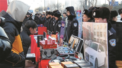 本报讯 (记者 尚铁军) 昨日上午,市公安局在万达广场举行全市公安机关“向人民汇报”打击盗抢骗赃物公开发还仪式,价值400余万元的赃物被返还。