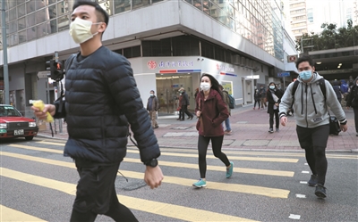 这是在香港街头拍摄的戴口罩的行人(12月19日摄)。香港特区政府卫生署卫生防护中心19日公布,截至当日零时,香港新增109例新冠肺炎确诊病例,其中本地感染病例102例、输入性病例7例。香港累计报告新冠肺炎确诊病例达8078例。