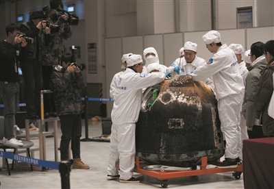 11月24日,嫦娥五号探测器发射入轨,经历地月转移、近月制动、在轨分离、平稳落月、钻表取样、月面起飞、交会对接及样品转移、环月等待、月地转移、再入回收等阶段,在轨工作23天,返回器携带月球样品于12月17日在内蒙古四子王旗预定区域着陆。此后,嫦娥五号返回器安全运抵北京,完成了开舱及相关处理工作,科技人员顺利取出了月球样品容器。