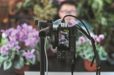 12月23日,崇福农创园的大学生“农创客”伊围通过直播的方式向顾客介绍一款年宵花卉的特点及养护技巧。伊围2013年和合伙人一起开始了园艺事业,在2019年入驻崇福农创园。农创园为他提供了创业初期重要的帮助,包括高规格的连栋大棚、便利的贷款及政策等。目前伊围经营有两家网店,以仙客来、角堇、常春藤等盆栽花卉绿植为主。