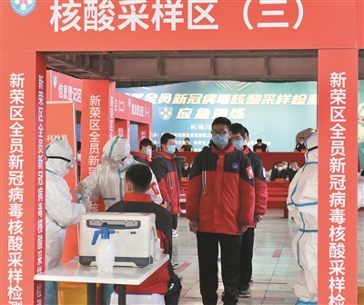 本报讯 (记者 辛雅君) 23日上午,新荣区在新荣职业中学体育馆举行全员新冠病毒核酸采样检测应急演练。区卫生健康和体育局、疾控中心、医疗集团人民医院、120急救中心等相关单位和团体参加演练。