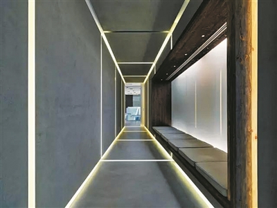 他们最早在密斯凡德罗领衔设计的西格拉姆大厦,其中的灯光设计就使用了“Tower of light”的概念让粗糙多孔的石灰岩材质产生了非常干净雅致的效果。从此“光洗墙”的设计手法就被沿用至今,灯带暗藏在吊顶、墙面或地面来勾勒空间的轮廓成为设计师最喜欢运用的灯光手法之一。