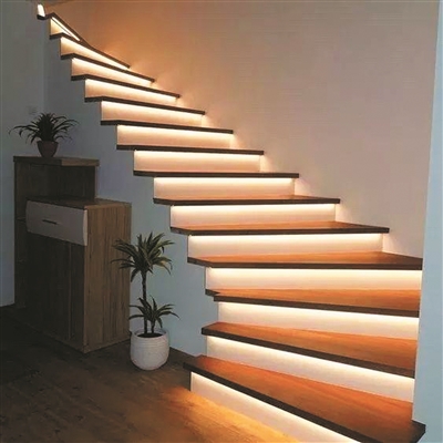 在简洁风格的设计中,灯带可以让空间变得更有型。灯带不止是美观的作用,更能增加空间的辅助照明,让空间变得更加明亮。在柜子内部增加灯带,能起到画龙点睛的作用;用灯带与层架结合,既有功能性又有很好的照明效果;在隔板下安装的灯带,让小房间从视觉上显得更宽敞;一个楼梯扶手下的灯带,解决了楼梯间的照明问题等。