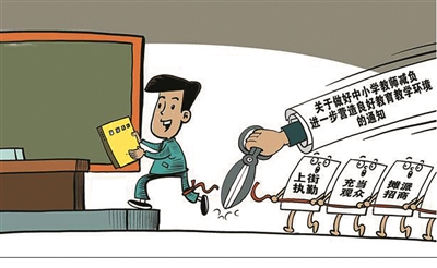 记者梳理发现,在减负清单中,我市在督查检查评比考核、精简文件会议报表、社会事务进校园、借调借用中小学教师等方面作出明确规定,全面减轻中小学教师非教学任务负担,减少对中小学校和教师不必要的干扰。