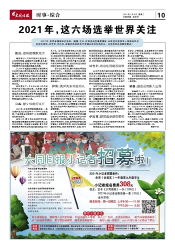 ~~~2021年,世界多国将举行选举。德国、日本、伊朗是地区重要国家,由谁担任新领导人将影响其所在地区局势;以色列、伊拉克、秘鲁的选举则关乎其国内政治乱局走向。这些选举各有哪些看点?