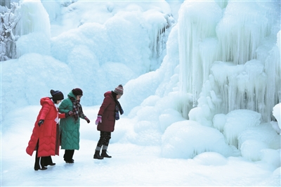 近日,济南九如山度假风景区依托原有的八潭九瀑旅游资源,通过引流形成多处造型各异的冰瀑群,吸引不少游客前来欣赏。