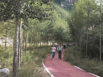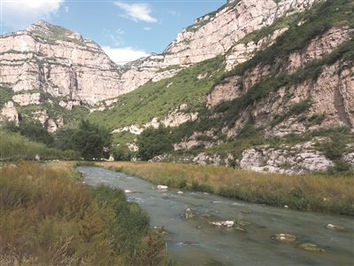 去唐河大峡谷是在去年夏季的一天,午后从上车河参观出来,有人提议走下公路到河边去看看,本来是想下到河滩看一眼就返回,没想到下去一走,就舍不得离开了。唐河水清清澈澈,急急地由北向南流淌着,助着游兴,大家迈开步子,沿着唐河西畔的健身跑道,从南往北走去,一直走了有十余公里,直到太阳西沉,我们才收起兴致乘车往回返。
