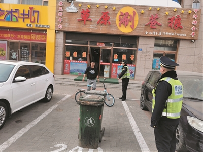 “这是公共停车位,请把侵占物品拿回去,如不拿,我们将进行清理。”“请自觉遵守‘门前五包’责任制,商铺门前的公共停车位不能私自侵占。”据该队负责人介绍,尽管他们已将违规圈地、私占停车位行为作为常态化工作管理,也多次对违规设置的地桩、地锁进行拆除,但仍有个别商户心存“我的地盘我做主”的错误认识和侥幸心理,变相利用垃圾桶、桌子、板凳等物品,非法侵占停车位。对此,执法队员将进一步宣传普及政策法规,坚决整治非法侵占停车位现象,还路于民。同时也呼吁市民都来争做文明大同人,共同维护城市环境秩序。