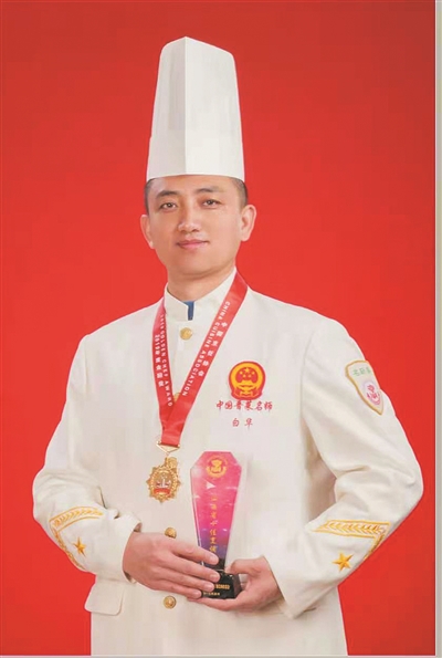 记者眼前的白华,温文尔雅,相貌英俊,说起话来慢条斯理。若不是身着白衣,头顶厨师帽,很难让人想象他竟是一位从业近24年的厨师。24年来,他在平凡的工作岗位上,实现着自己的人生价值。他是“注册中国烹饪名师”,是“中国晋菜名师”; 他曾荣获全国第八届烹饪服务技能竞赛个人赛中餐热菜项目“银奖”,他得过中国烹饪协会颁发的“金厨奖”;他还是我市2020年劳动模范……这些成就让他成为我市“餐饮人”中的佼佼者。