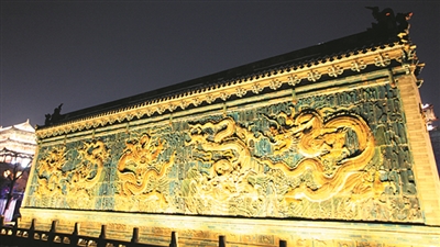 照壁作为中国传统建筑的重要组成部分,位于大型建筑群前,是建筑群等级的体现, 也是精美的雕塑作品。大同古城内共有三面照壁。其一,九龙壁,为明太祖第十三子代王朱桂府邸照壁,建于明洪武二十五年;其二,大十字街五龙壁,位于原县文庙正门前,建于清雍正二年,是县文庙的照壁;其三,善化寺五龙壁,建于明万历年间,原为兴国寺山门前之照壁,现迁移至善化寺山门对面。另外在大同观音堂前,也有一面三龙壁。