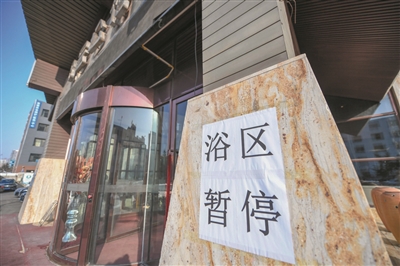 1月24日,位于长春市金川街的一家酒店贴出“浴区暂停”告示。