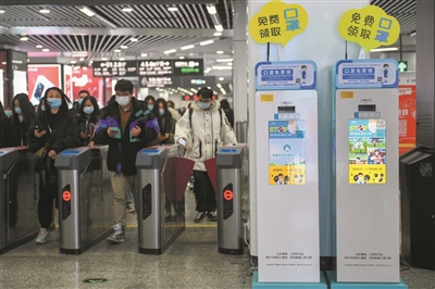 近日,长沙地铁在2号线的23个地铁站设置了智能口罩派发机,每位乘客每天可扫码免费领取1个口罩,其余线路和站点将逐步设置智能口罩派发机,为市民安全出行提供便利。