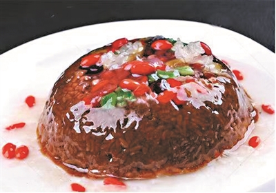 在这里要特别推荐一下平城烤鸡和花开富贵这两道菜。平城烤鸡选用因黄羽、黄喙、黄脚而得名的“三黄鸡”,搭配香梨、桂圆、冬笋、香菇,经3小时烤制而成,肉酥酱香。花开富贵是一道主食,是将菠菜、胡萝卜、南瓜榨汁和面,蒸制而成。不仅富有营养,而且切开后像花儿一样,寓意吉祥富贵。