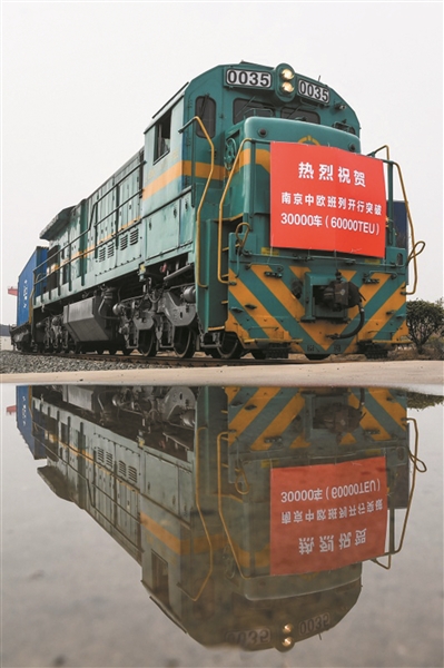 当日,满载着电子零配件、洗衣机配件及液晶显示器等42车货物的X8074次列车驶出南京货运中心尧化门站,开往俄罗斯沃尔西诺,这标志着从南京始发的中欧班列开行突破30000车。