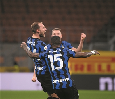 1月26日,国米球员埃里克森(左)庆祝进球。