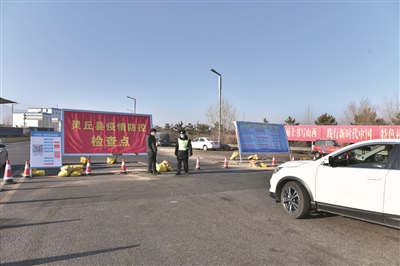 图为日前在荣乌高速灵丘站入口处设立的疫情防控检查点正在对入同车辆及人员进行查验。 本报记者 张占兵 摄