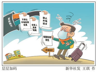 1月31日召开的国务院联防联控机制新闻发布会针对有些地方层层加码的问题,对北京市以外的省份明确提出“六不准”,直戳防控工作中的难点和痛点。各地要拿出担当,及时纠偏,把“六不准”落到实处,让群众返乡之路更安全、更温暖。