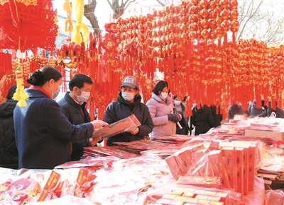 1月31日,顾客在永靖县刘家峡镇一市场挑选节庆饰品。